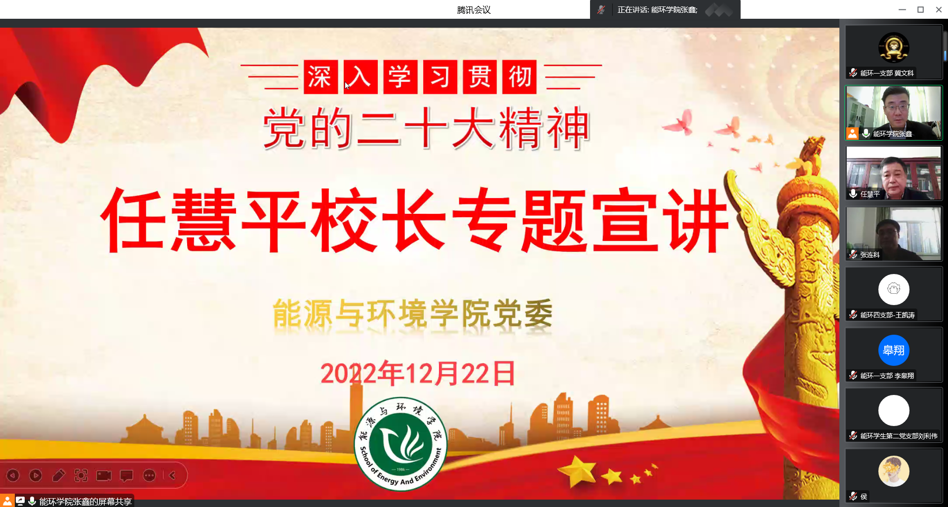 为全面深入学习宣传贯彻党的二十大精神,推动党的二十大精神入脑入心、落地生根, 12月22日上午,公司邀请公司党委副书记、董事长任慧平教授为公司全体教师作党的二十大精神专题宣讲。公司党委书记张鑫主持宣讲会。