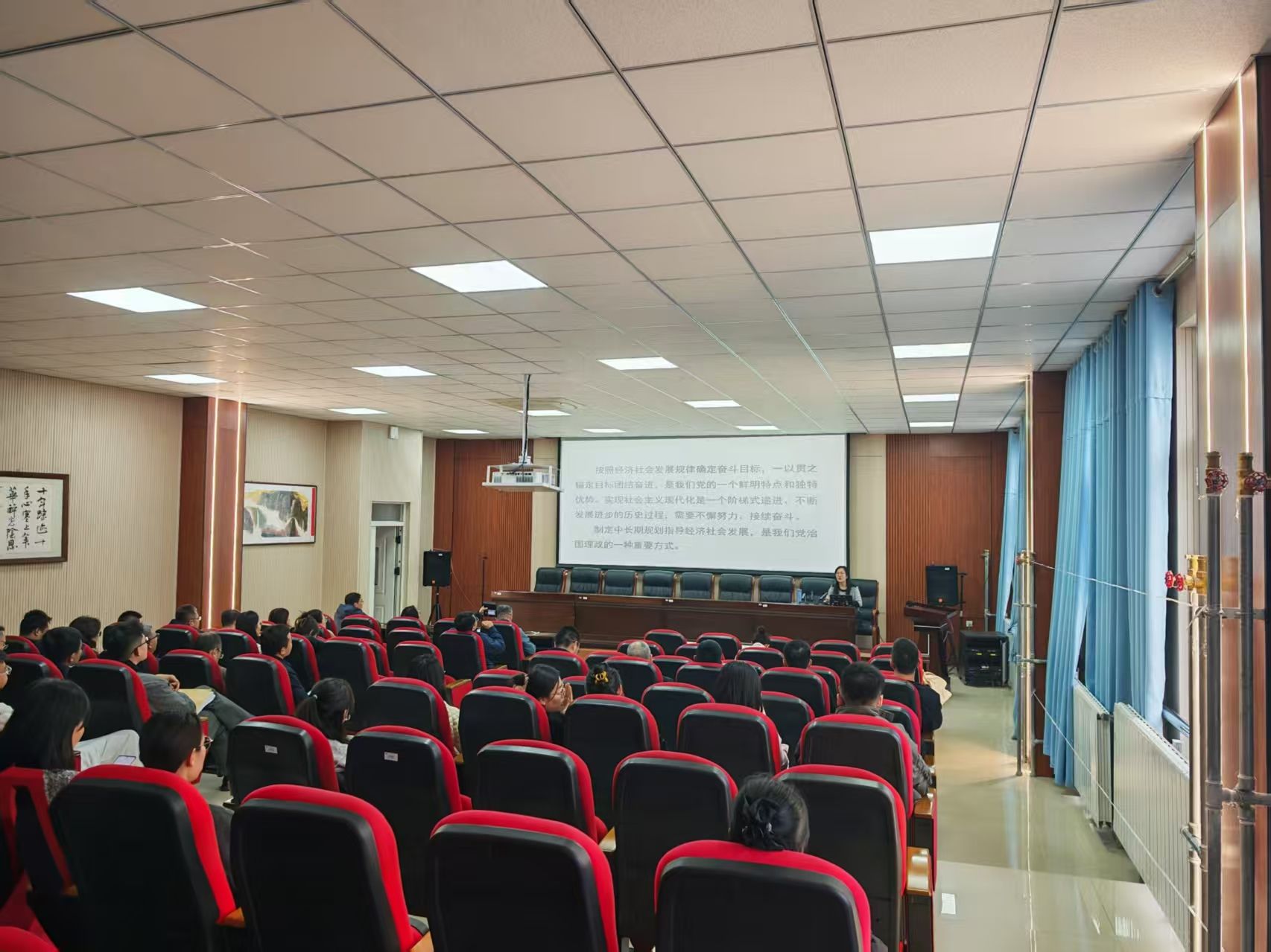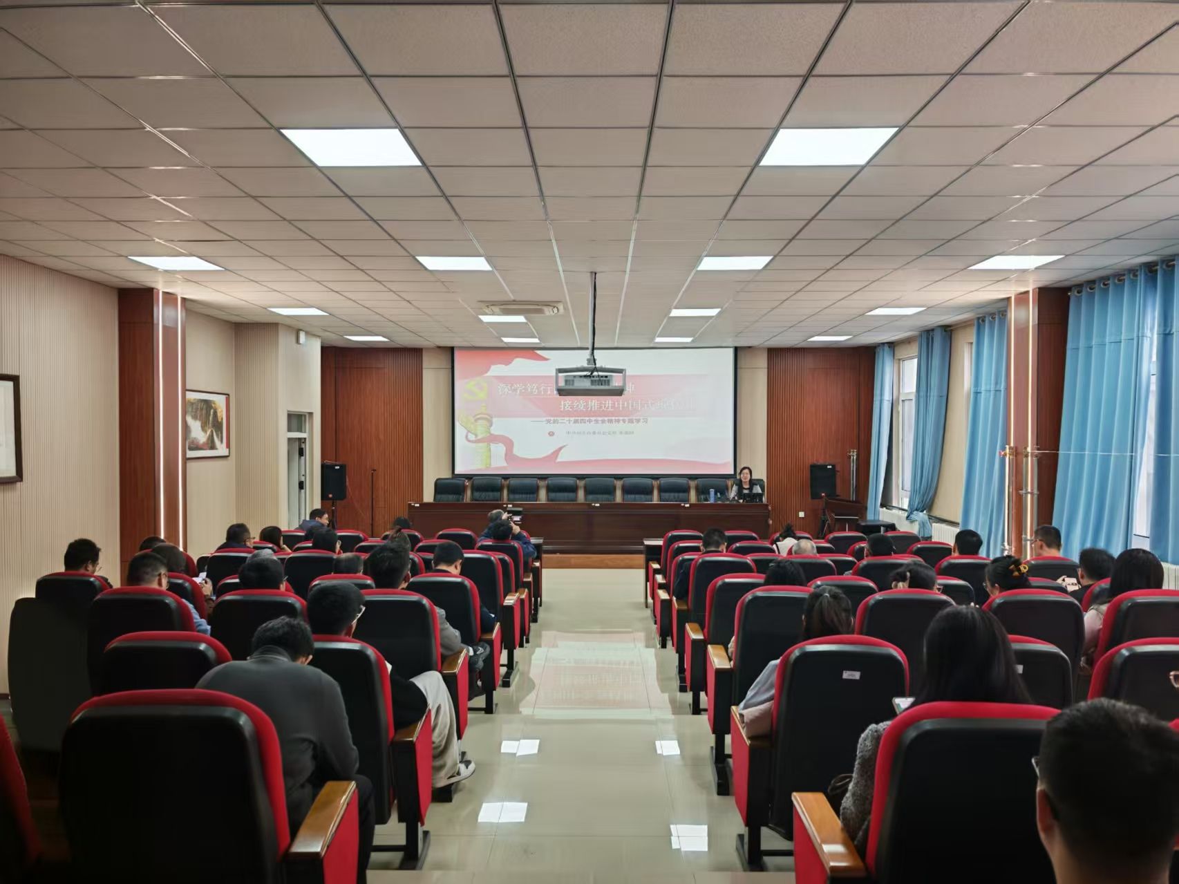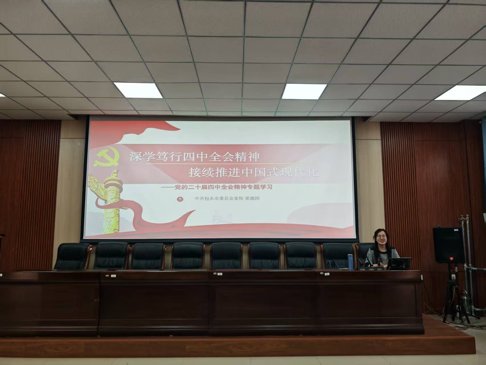 本次讲座特邀中共包头市委员会党公司党史党建教研室教师张鹿园莅临授课,围绕党的二十届四中全会精神进行专题辅导。讲座紧密结合当前形势与任务,从“十五五”时期的历史方位、总体部署和重大任务三个方面进行了深入阐释和解读。