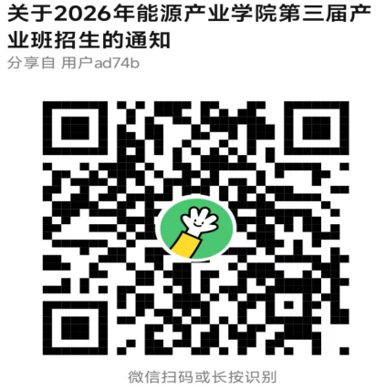 太阳成集团tyc33455cc官网能源产业公司第三届产业班学员招生报名时间为2025年11月20日-12月15日,请各位同学扫描下方二维码进行报名。(请提供班级、姓名、学号、绩点信息及联系电话等信息)。第三届产业班学员招生工作将由能源产业公司统筹安排,特此通知。