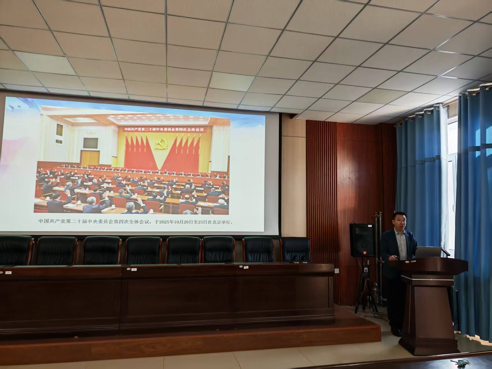 冯大彪教授长期从事马克思主义理论教学与研究,理论功底扎实,宣讲经验丰富,是公司学习贯彻党的二十届四中全会精神校级宣讲团成员。本次宣讲围绕党的二十届四中全会召开的重大意义、《中共中央关于制定国民经济和社会发展第十五个五年规划的建议》的起草过程、基本内容和主要问题展开深入解读。宣讲结合学科特色,引导师生准确把握全会精神与高等教育、科技创新、人才培养的内在联系,进一步凝聚思想共识,激发奋进力量。整场宣讲逻辑严密、内容翔实、语言生动,既有理论高度,又紧密结合时事,具有很强的思想性、针对性和感染力。