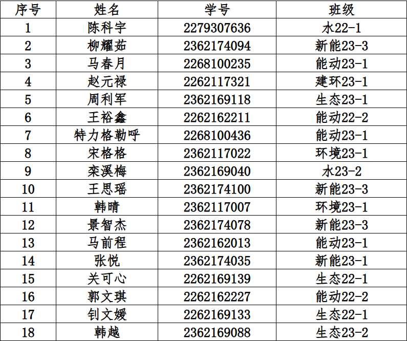 为进一步加强共青团组织建设,严格把好发展团员入口关,根据《中国共产主义青年团章程》和《中国共产主义青年团发展团员工作细则》的有关规定,经本人申请、团总支培养考察、入团积极分子培训班学习、入团考试等环节,拟发展以下18名同学为共青团员,现予以公示。